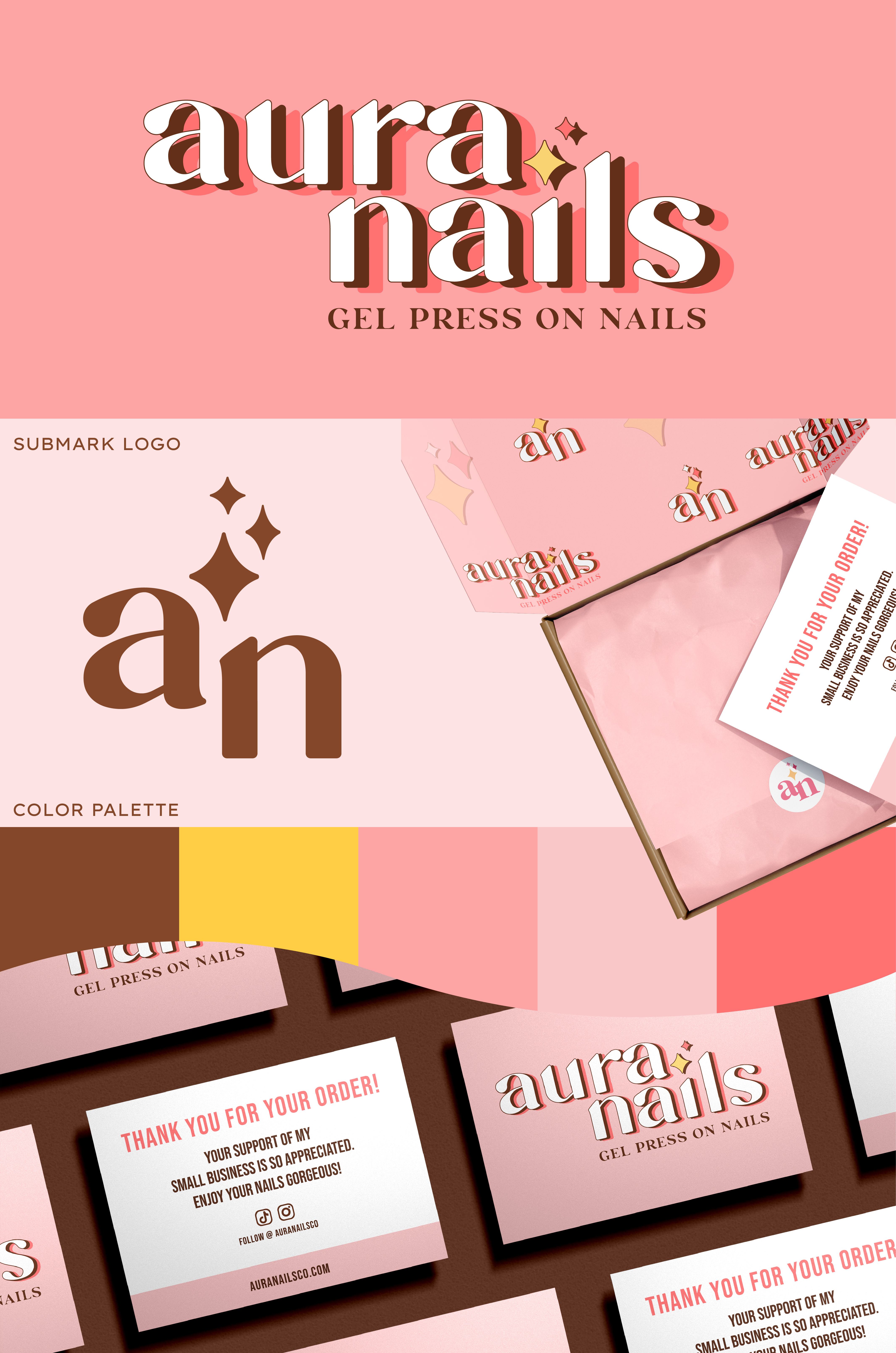 The goal was to create a fun and feminine branding identity for a press on nail business.